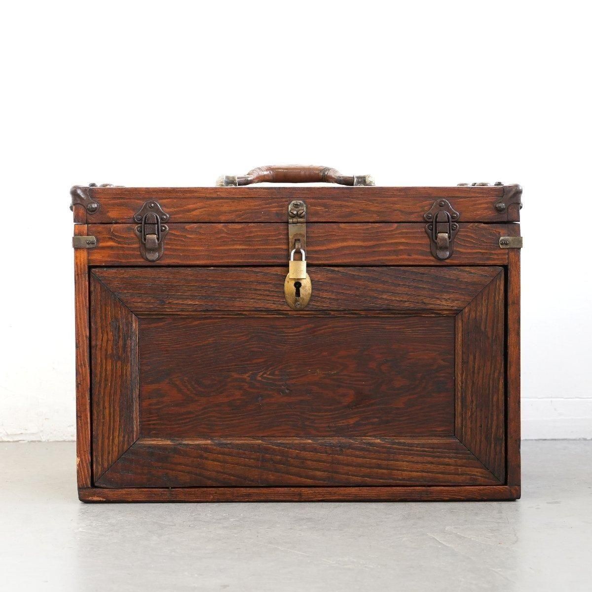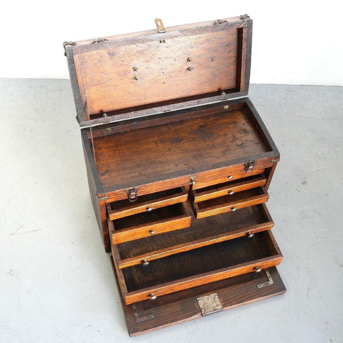 アメリカで使用されていたヴィンテージのウッドツールボックスです。