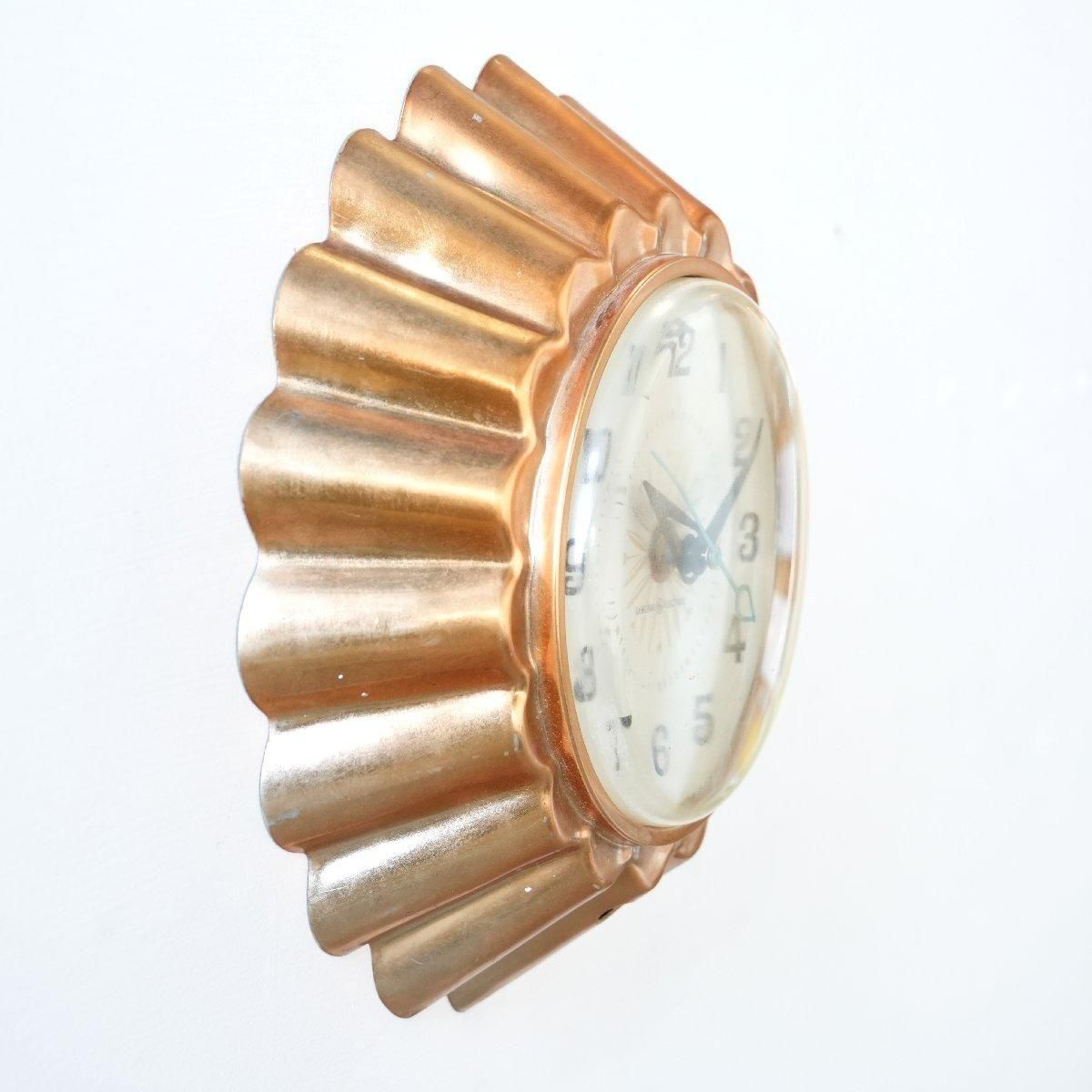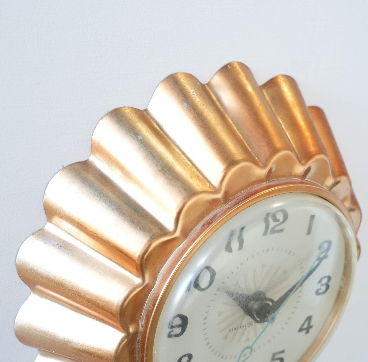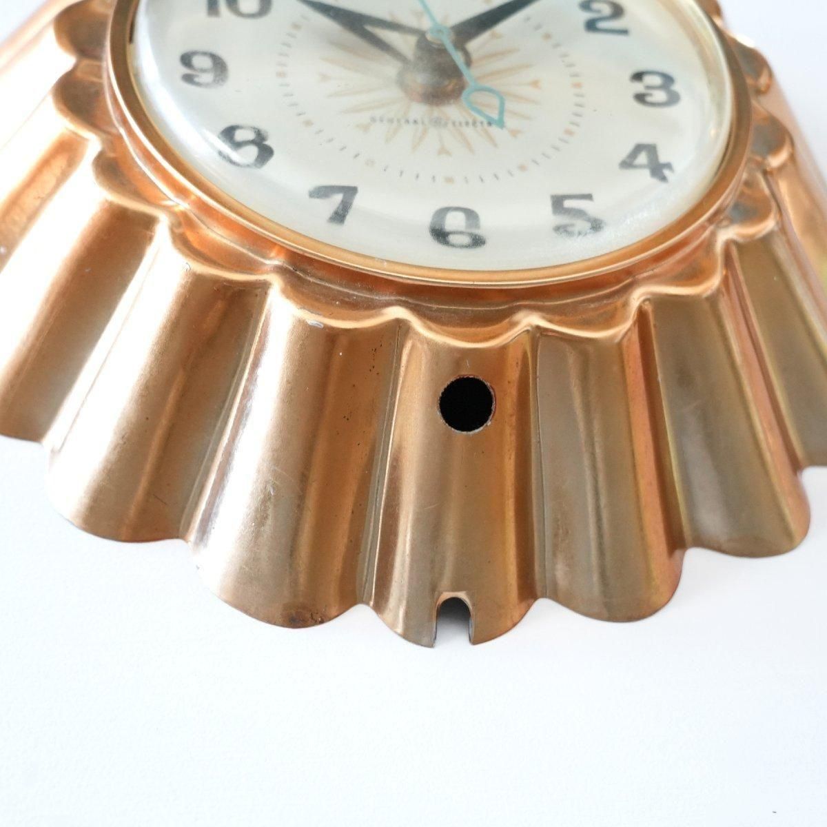 ミッドセンチュリー期のキッチンクロックは、キッチンウェアやデザートモールドを模したデザインが多く小ぶりなサイズ感で、このゼリーモールド型のフレームはキッチンの雰囲気にぴったりです。