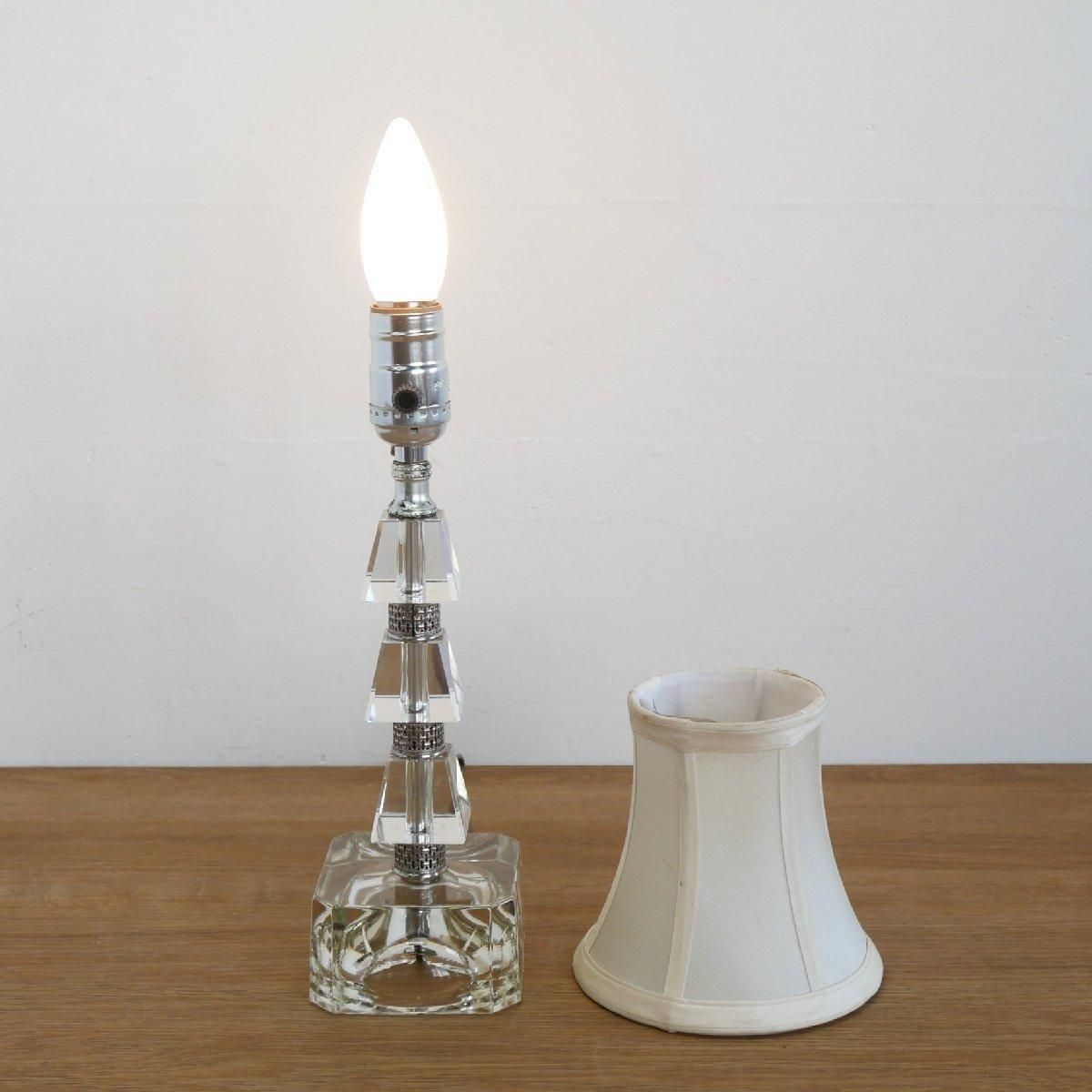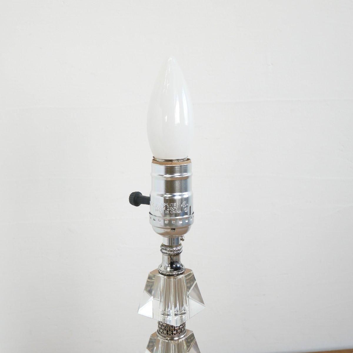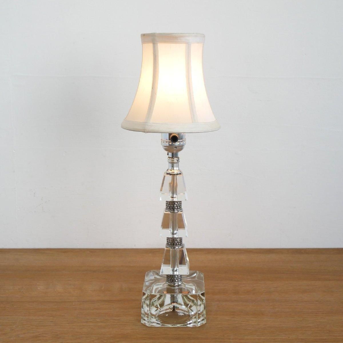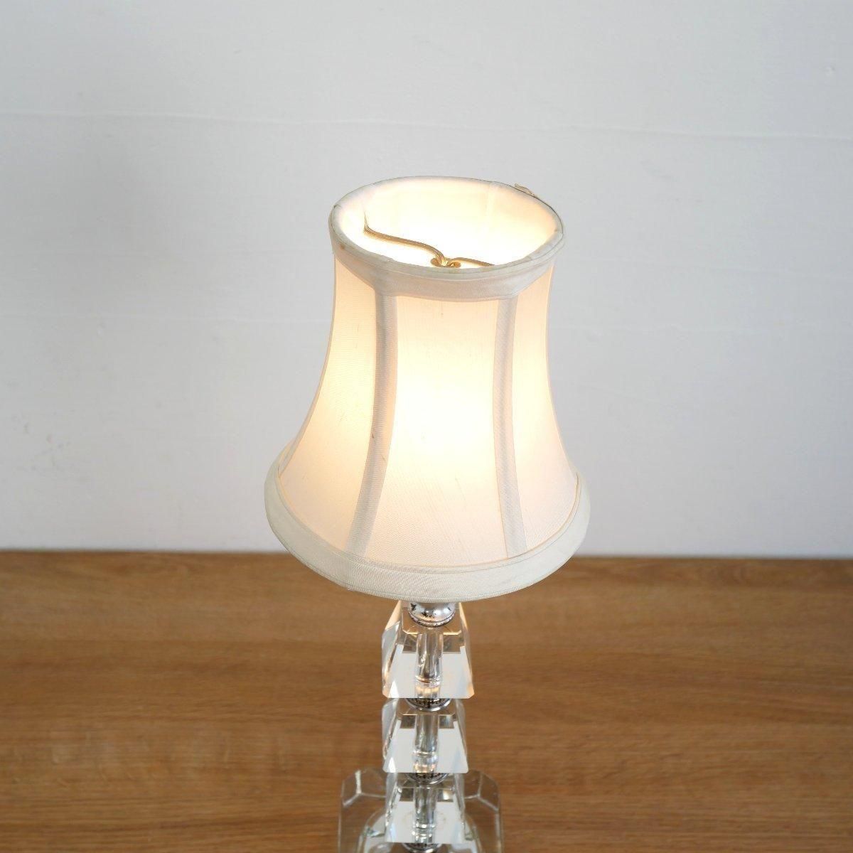 ガラスの装飾と、ファブリックシェードからこぼれる灯りに癒されます。