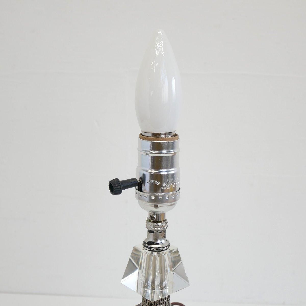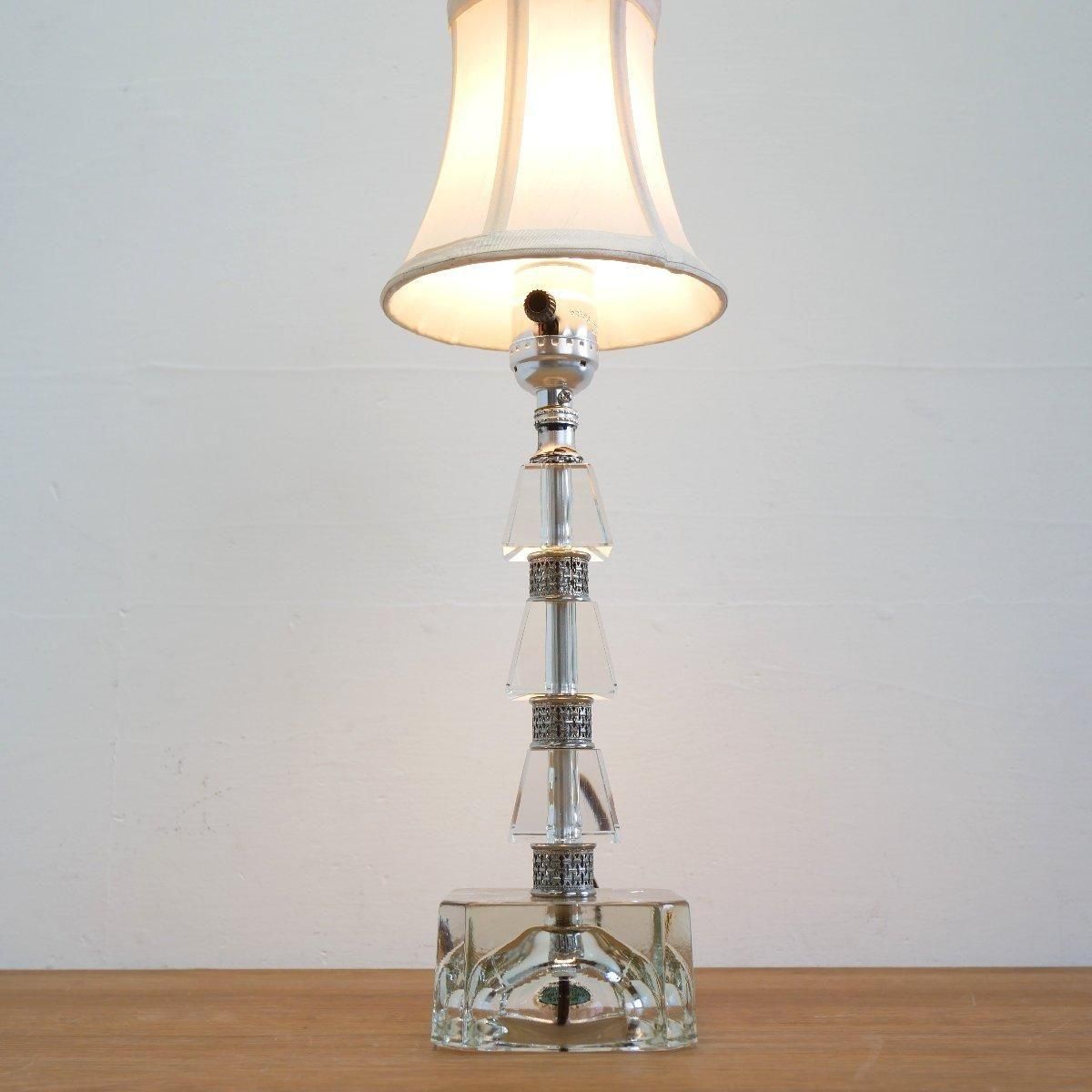 ソケット、コード、プラグは新品に交換しています。ガラスにカケはありません。シェードに多少汚れがあります。また、細かいキズや変色など、経年による劣化があります。