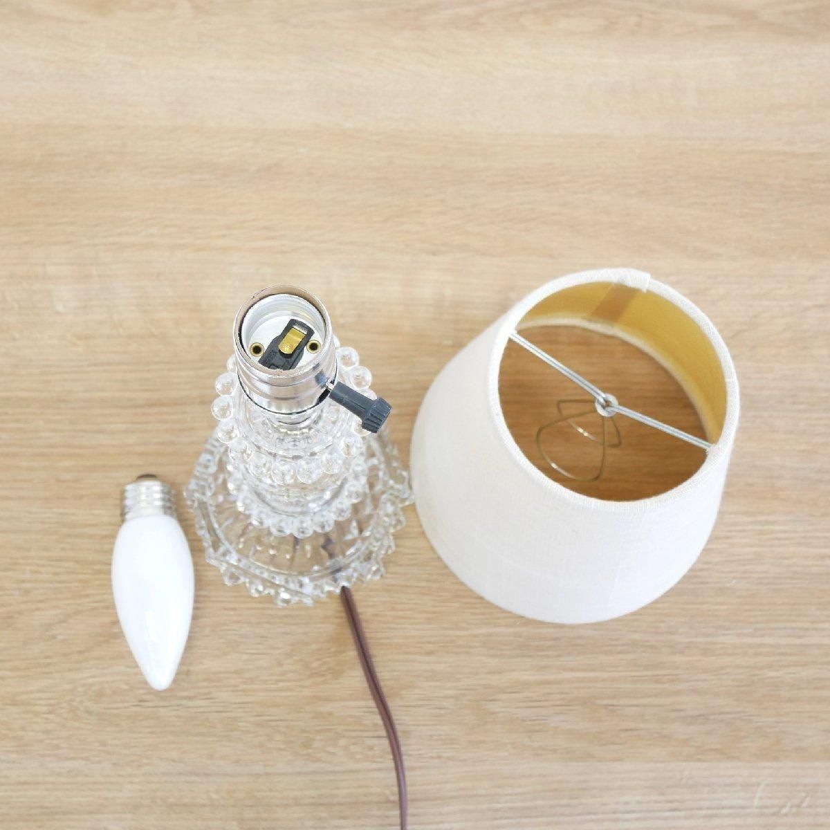 ソケット、コード、プラグは新品に交換しています。ガラスにカケはありません。シェードに多少汚れがあります。また、細かいキズや変色など、経年による劣化があります。