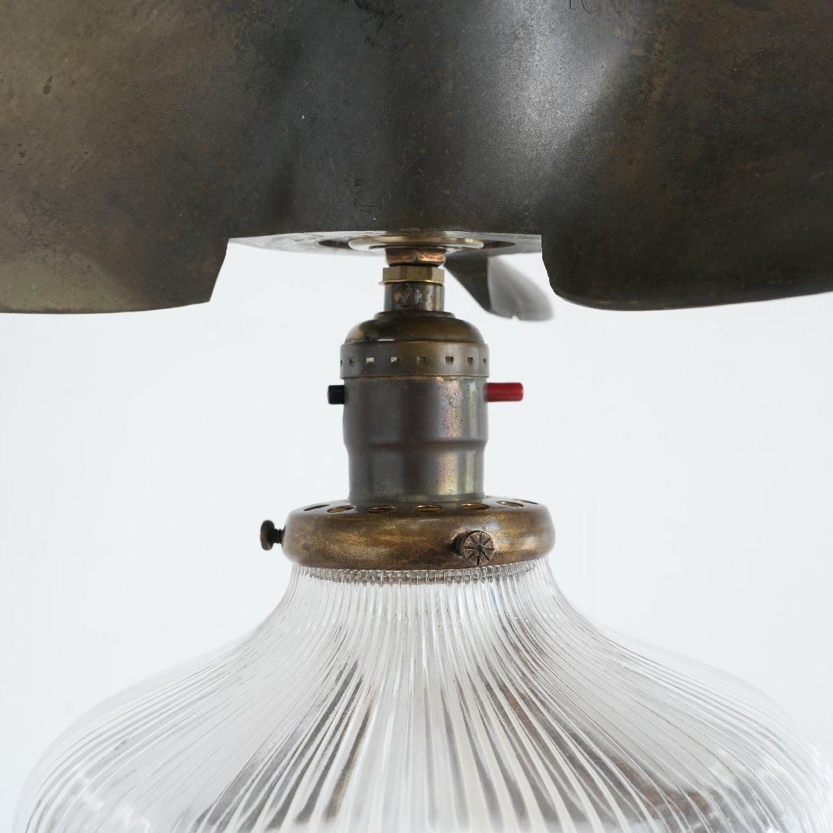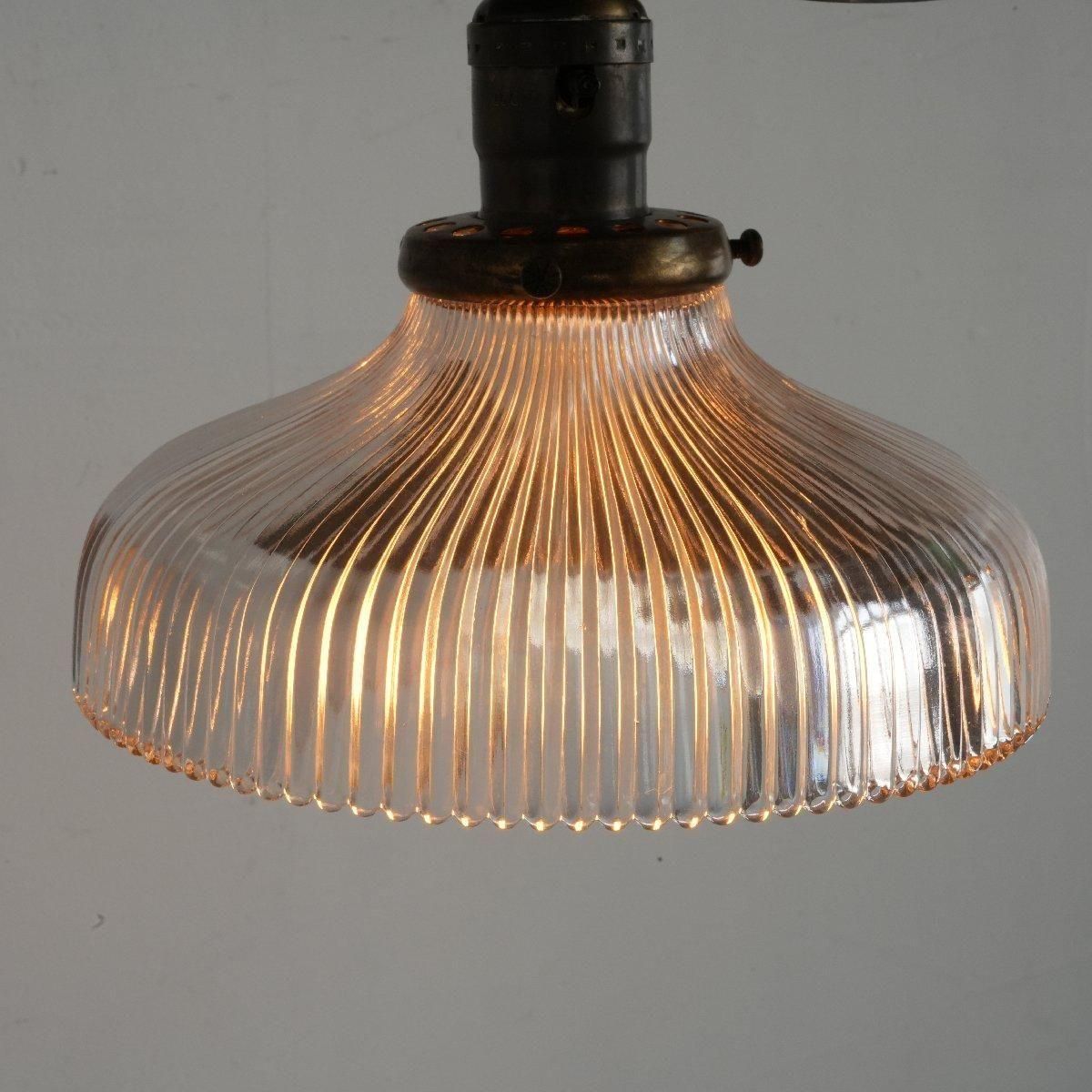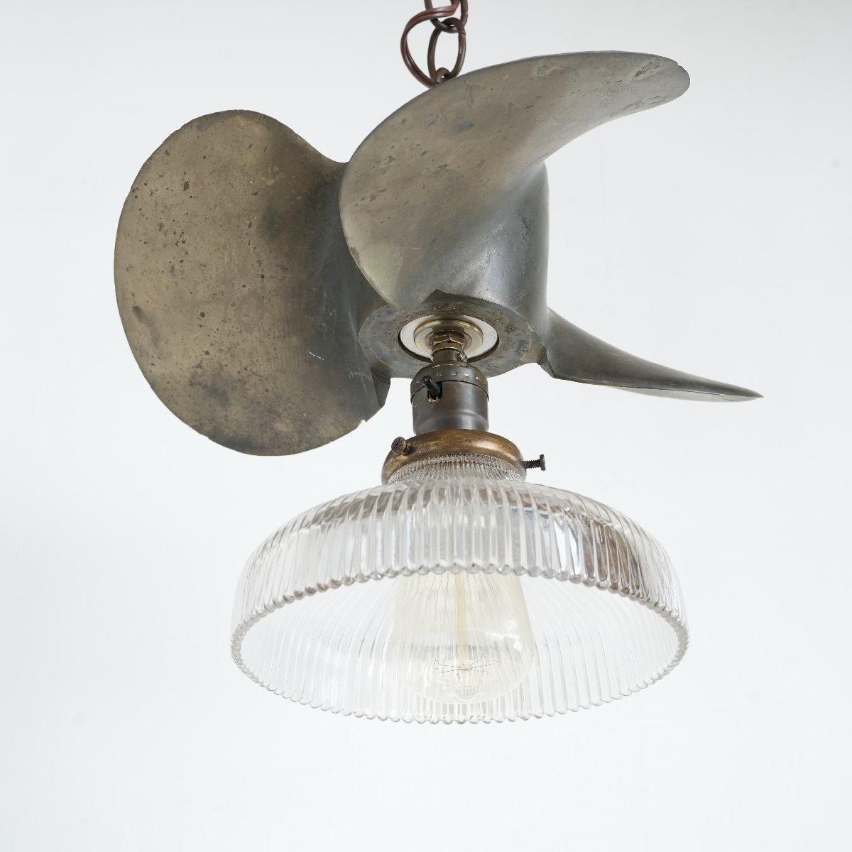 プロペラとガラスシェードが組み合わさったヴィンテージのペンダントランプです。
