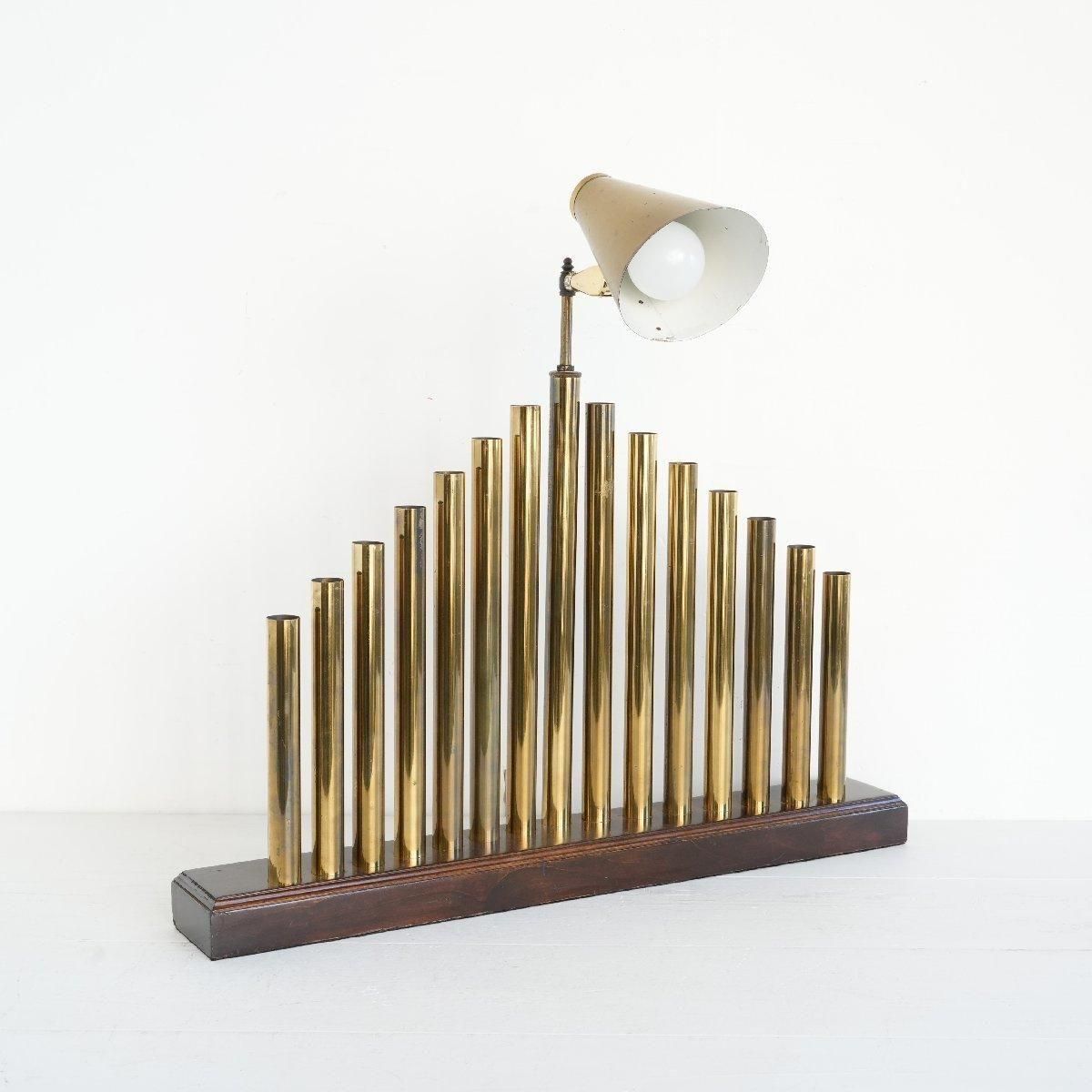 木製の台座に真鍮製のパイプがパイプオルガンのように並んでおり、とても印象に残るデザインです。