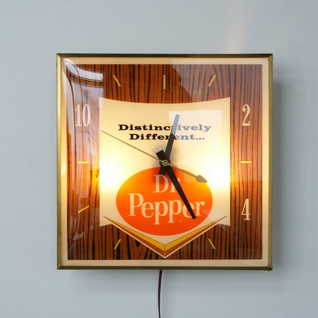 推定1960年代頃の【Dr. Pepper/ドクターペッパー】社の広告用として使用されていた希少な電飾時計です。